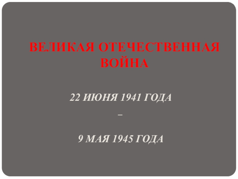 ВЕЛИКАЯ ОТЕЧЕСТВЕННАЯ ВОЙНА22 ИЮНЯ 1941 ГОДА _9 МАЯ 1945 ГОДА