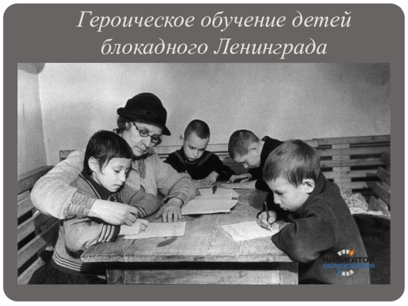 Слайд 10Героическое обучение детей блокадного Ленинграда