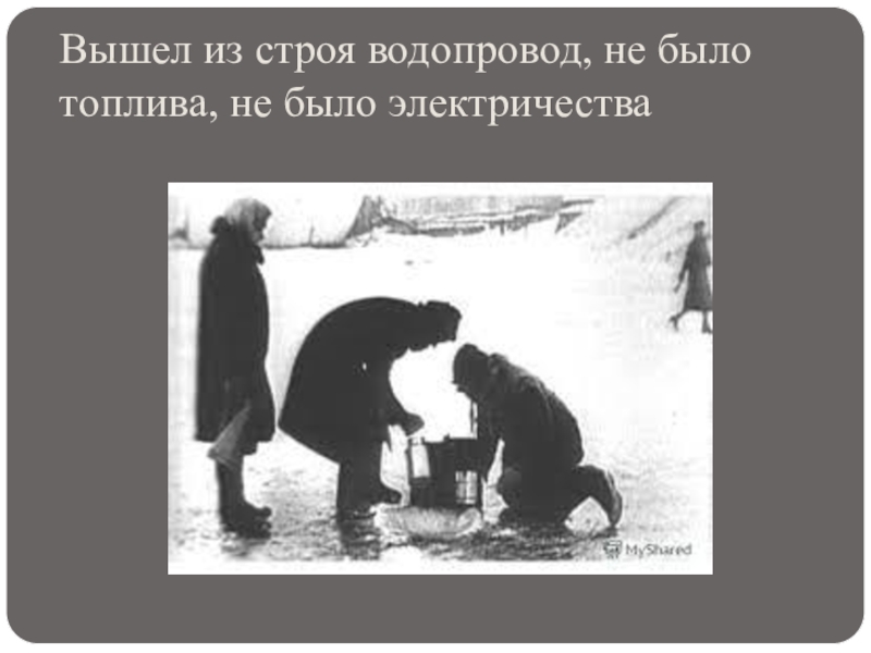 Слайд 6Вышел из строя водопровод, не было топлива, не было электричества