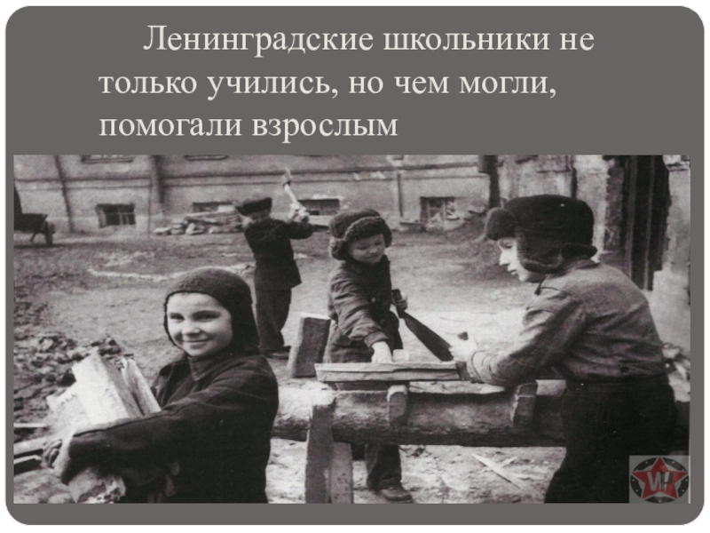 Слайд 11     Ленинградские школьники не только учились, но чем могли, помогали