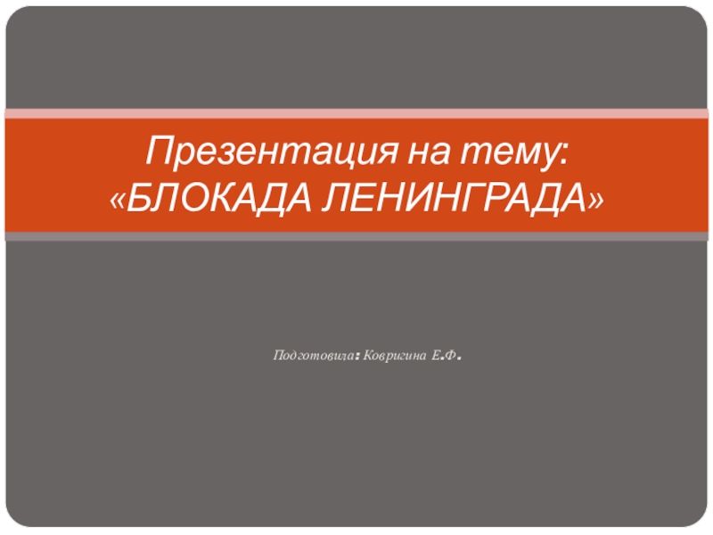 Подготовила: Ковригина Е.Ф.Презентация на тему: «БЛОКАДА ЛЕНИНГРАДА»