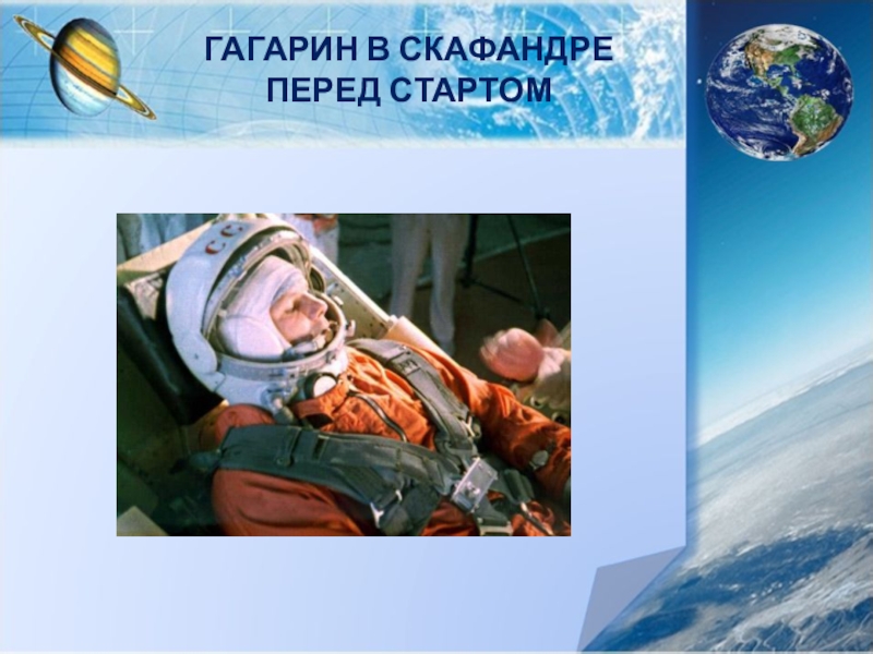 Слайд 4ГАГАРИН В СКАФАНДРЕ ПЕРЕД СТАРТОМ
