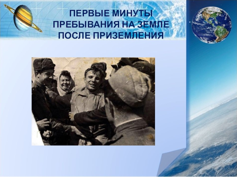 Слайд 5ПЕРВЫЕ МИНУТЫ ПРЕБЫВАНИЯ НА ЗЕМЛЕ ПОСЛЕ ПРИЗЕМЛЕНИЯ