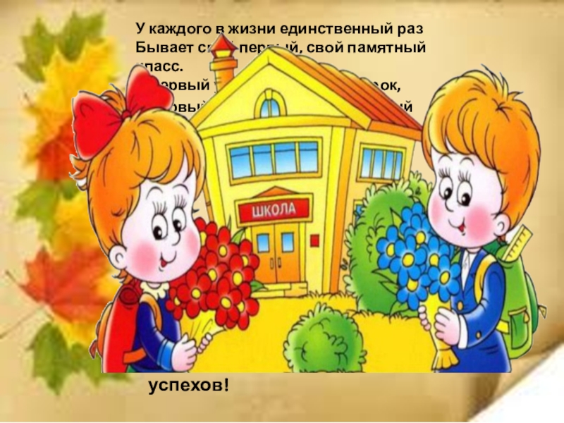 Школа станет для вас вторым домом, здесь вы научитесь читать, писать, решать задачи, любить и беречь природу, найдёте много новых замечательных друзей. Удачи Вам, успехов!