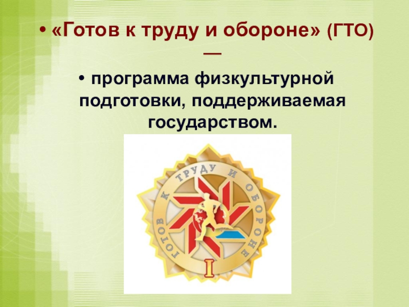 Слайд 5«Готов к труду и обороне» (ГТО) —