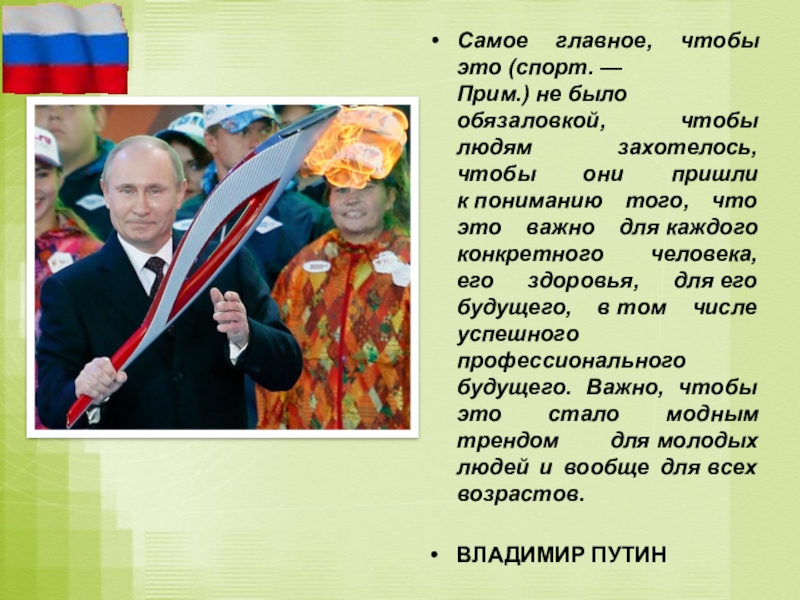 Слайд 11Самое главное, чтобы это (спорт. — Прим.) не было обязаловкой, чтобы людям захотелось, чтобы они