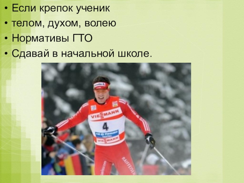 Если крепок учениктелом, духом, волеюНормативы ГТОСдавай в начальной школе.