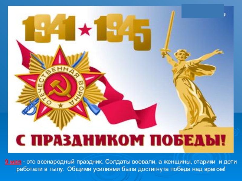 и дети работали в тылу. Общими усилиями была достигнута победа над врагом!