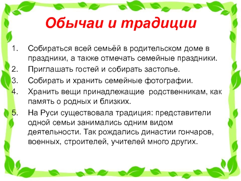 Собираться всей семьёй в родительском доме в праздники, а