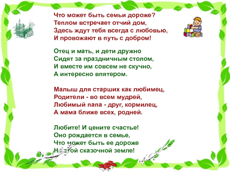 Слайд 13Что может быть семьи дороже?