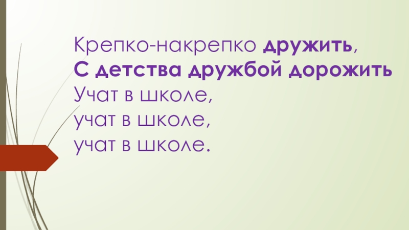 Слайд 2Крепко-накрепко дружить, С детства дружбой дорожить Учат в школе, учат в школе, учат