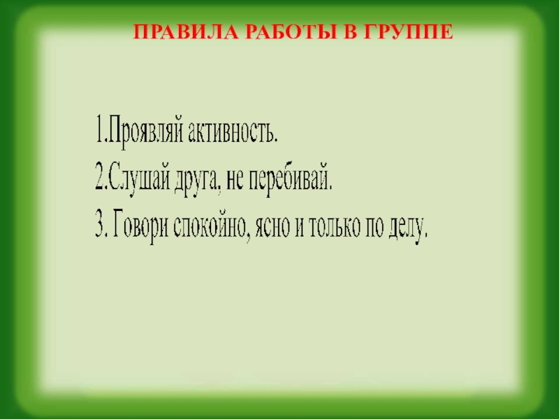 Слайд 7ПРАВИЛА РАБОТЫ В ГРУППЕ