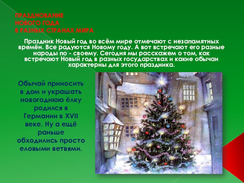 Обычай приносить в дом и украшать новогоднюю ёлку родился в Германии в XVII веке. Ну а ещё раньше обходились просто еловыми ветвями.