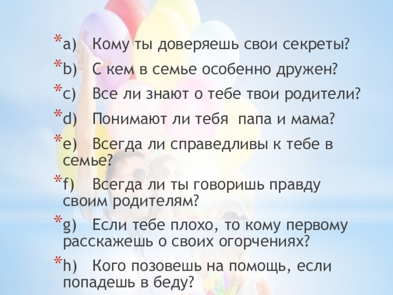 Слайд 5a) Кому ты доверяешь свои секреты?