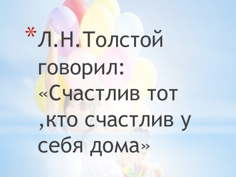 Слайд 3Л.Н.Толстой говорил: «Счастлив тот ,кто счастлив у себя дома»