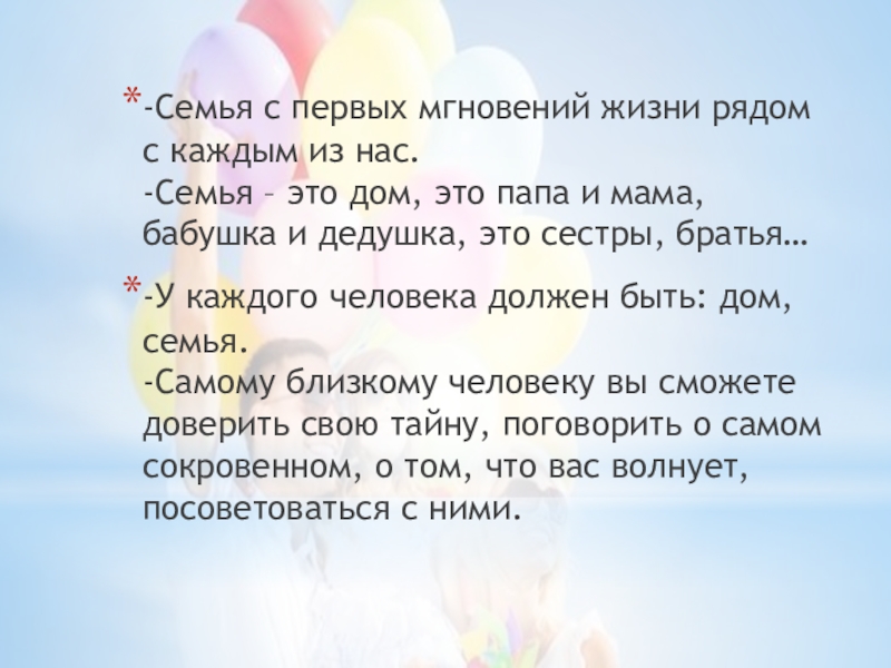 Слайд 4-Семья с первых мгновений жизни рядом с каждым из нас.