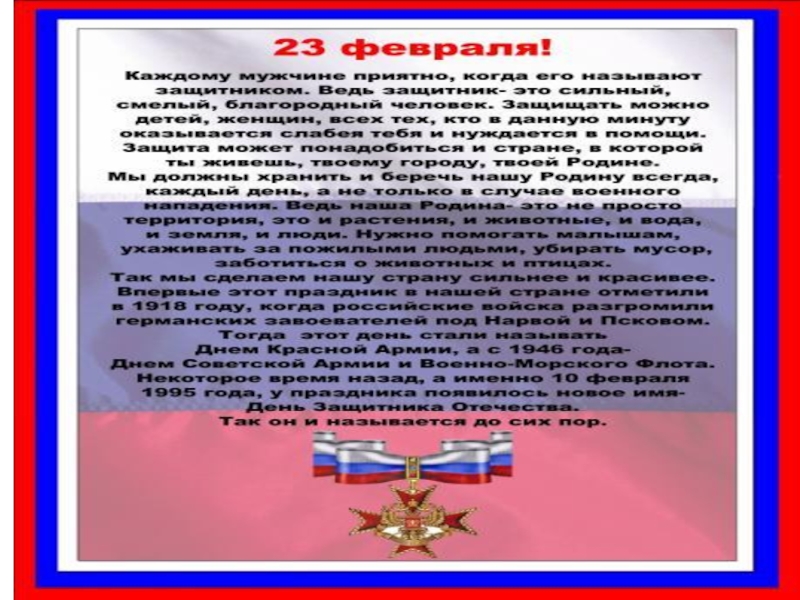 Презентация, доклад классный час тема: С Днём защитника Отечества