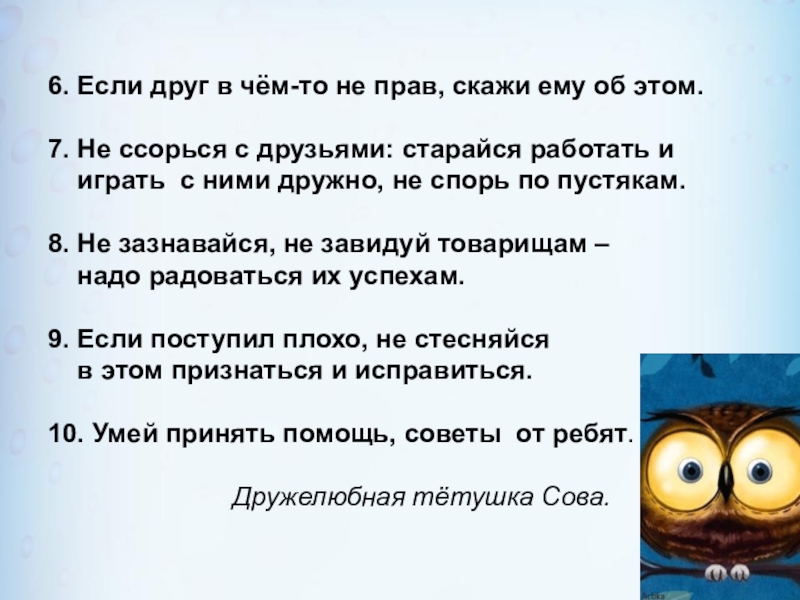 6. Если друг в чём-то не прав, скажи ему об этом.