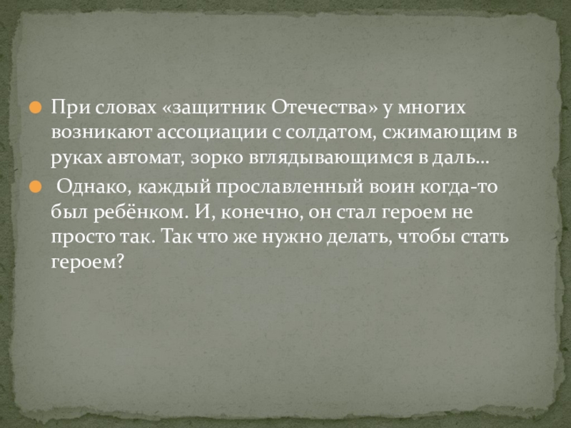 Слайд 3При словах «защитник Отечества» у многих возникают ассоциации с солдатом, сжимающим