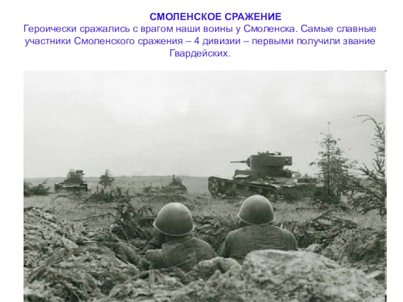 наши воины у Смоленска. Самые славные участники Смоленского сражения – 4 дивизии – первыми получили звание Гвардейских.