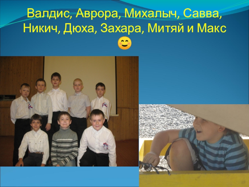 Слайд 27Валдис, Аврора, Михалыч, Савва, Никич, Дюха, Захара, Митяй и Макс ☺