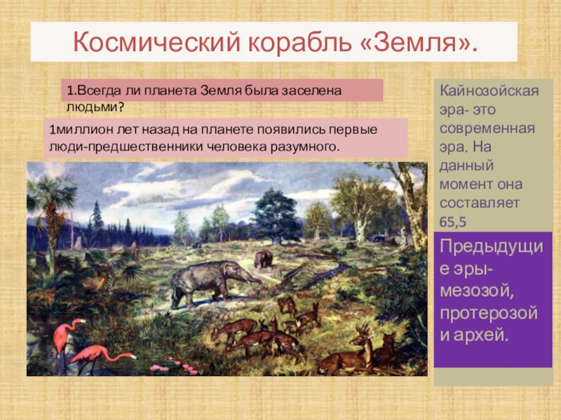 1миллион лет назад на планете появились первые люди-предшественники человека разумного.