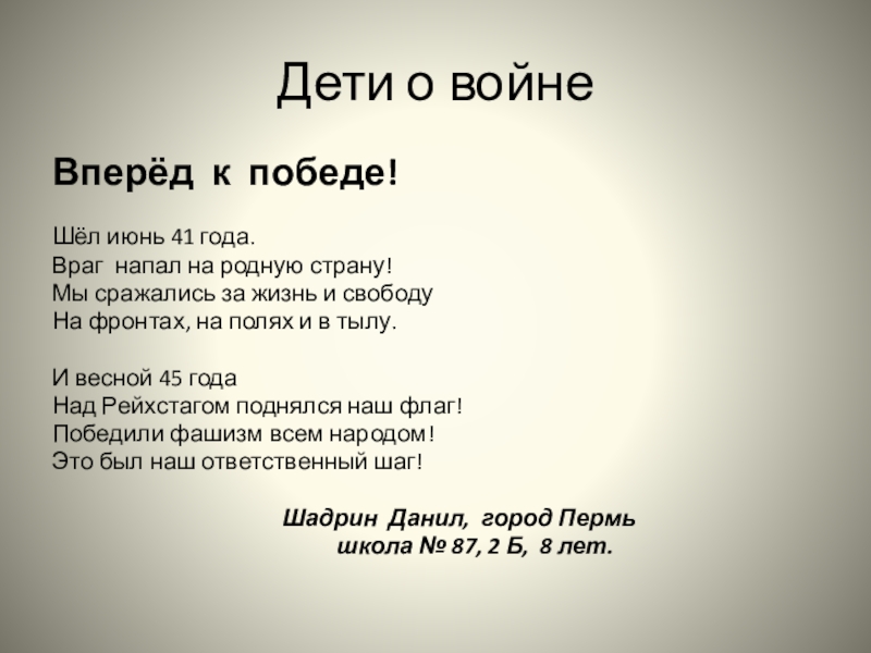 Это сайт презентаций, где можно хранить и обмениваться своими презентациями, докладами, проектами, шаблонами в формате PowerPoint с другими пользователями. Мы помогаем школьникам, студентам, учителям, преподавателям хранить и обмениваться учебными материалами.