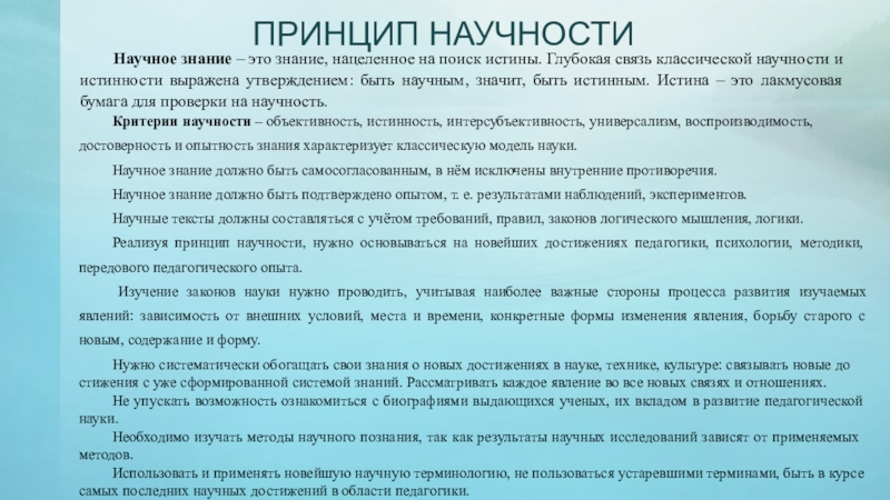 Слайд 9ПРИНЦИП НАУЧНОСТИ