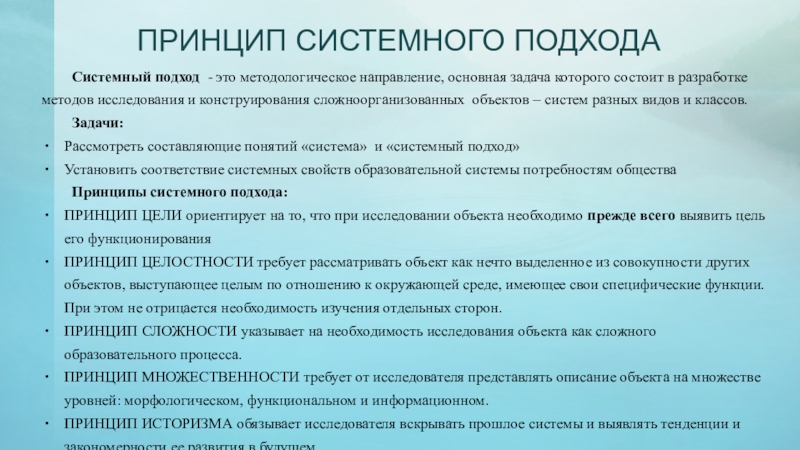ПРИНЦИП СЛОЖНОСТИ указывает на необходимость исследования объекта как сложного образовательного процесса.