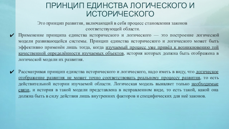 Слайд 14ПРИНЦИП ЕДИНСТВА ЛОГИЧЕСКОГО И ИСТОРИЧЕСКОГО