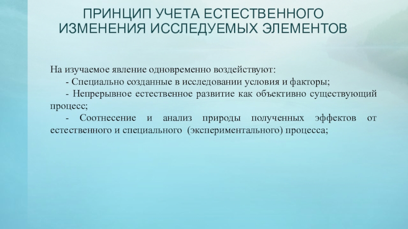 Слайд 12ПРИНЦИП УЧЕТА ЕСТЕСТВЕННОГО ИЗМЕНЕНИЯ ИССЛЕДУЕМЫХ ЭЛЕМЕНТОВ