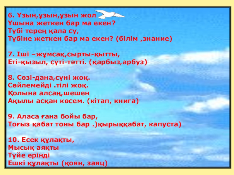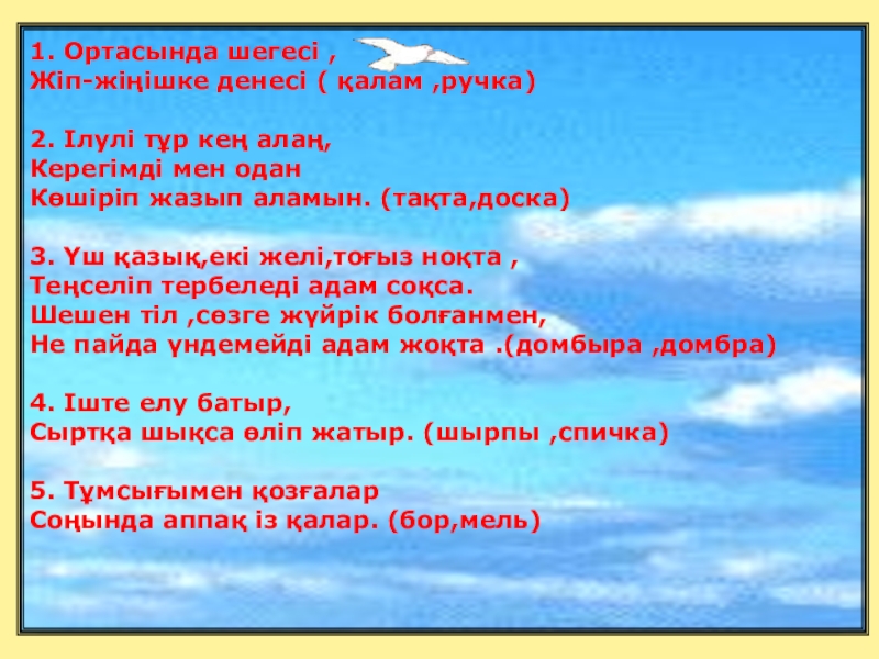 5. Бесінші кезең “Білегіңе сенбе, біліміңе сен» «Жұмбақ шешу!»