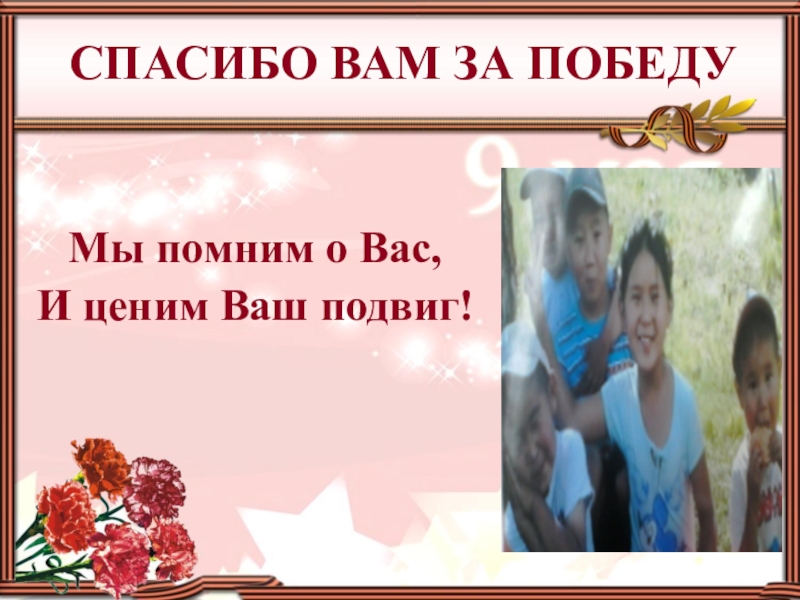 Мы помним о Вас, И ценим Ваш подвиг! СПАСИБО ВАМ ЗА ПОБЕДУ