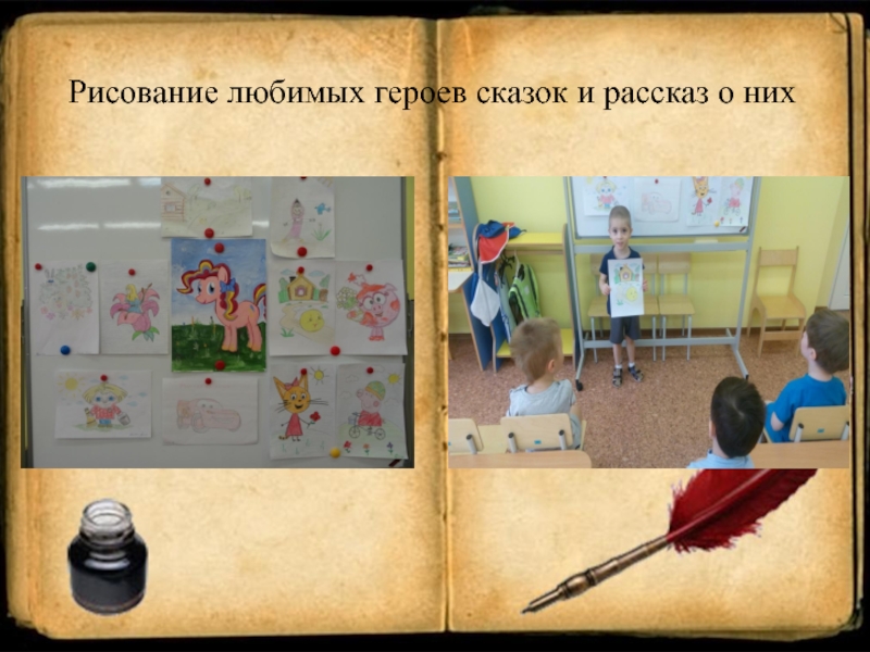 Слайд 15Рисование любимых героев сказок и рассказ о них