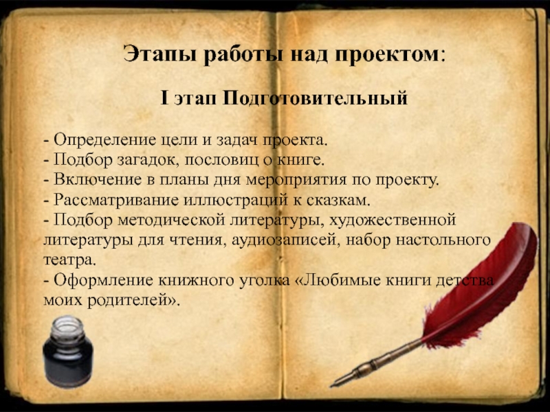 - Оформление книжного уголка «Любимые книги детства моих родителей».