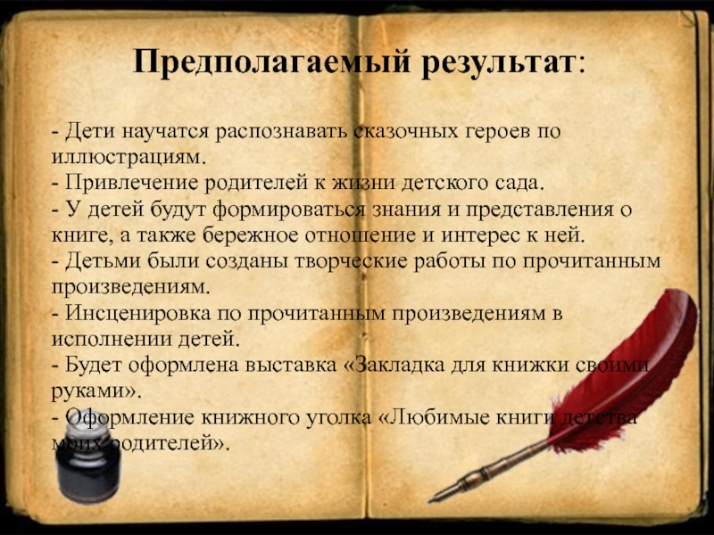 - У детей будут формироваться знания и представления о книге, а также бережное отношение и интерес к ней.