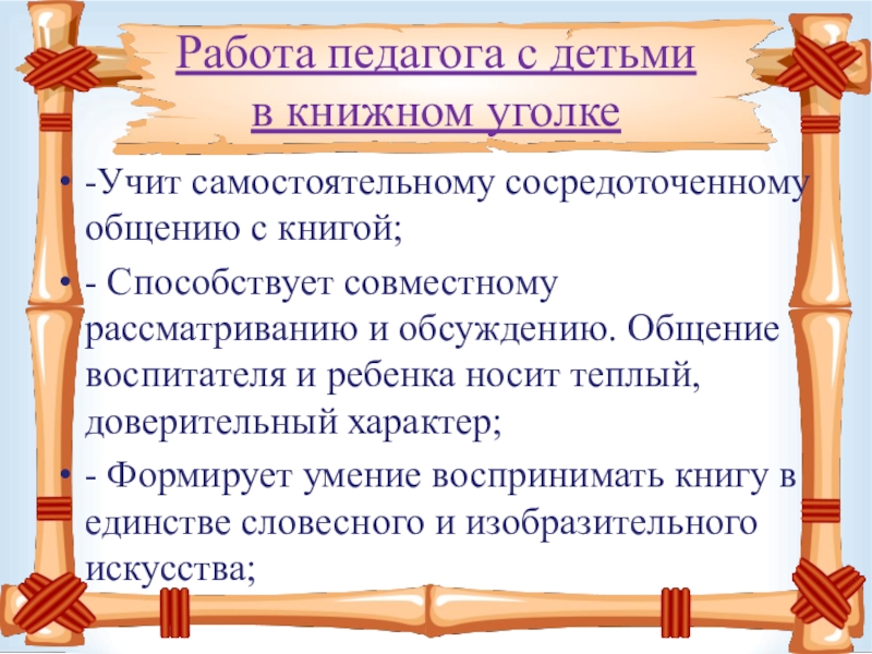 - Формирует умение воспринимать книгу в единстве словесного и изобразительного искусства;
