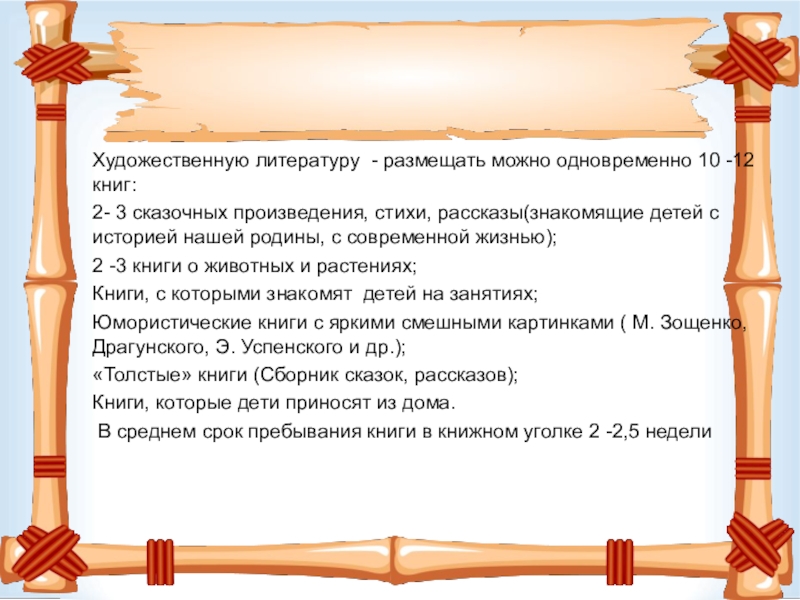 В среднем срок пребывания книги в книжном уголке 2 -2,5 недели
