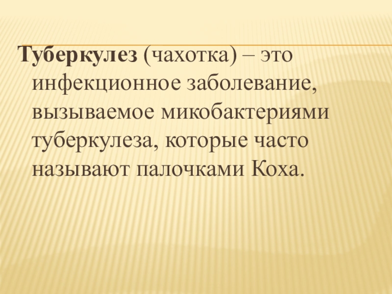 Слайд 2Туберкулез (чахотка) – это инфекционное заболевание, вызываемое микобактериями туберкулеза, которые часто называют