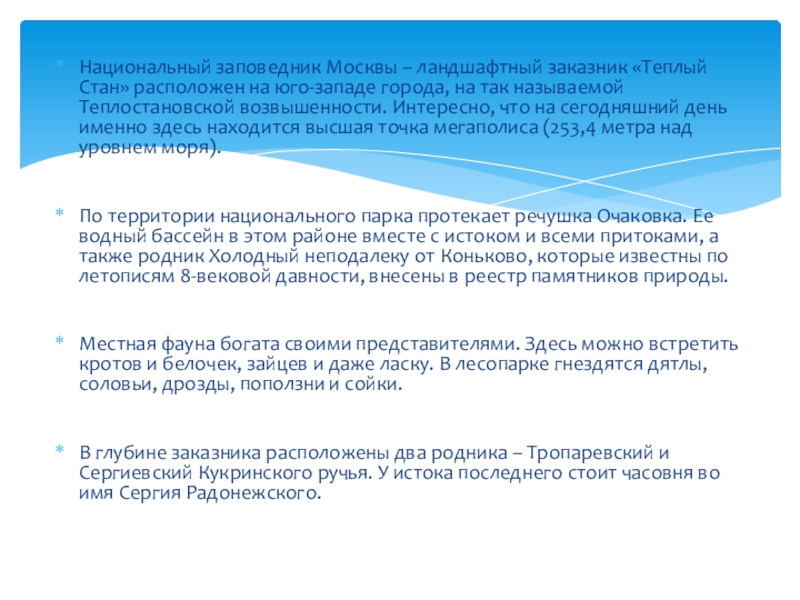 Национальные заповедники Москвы