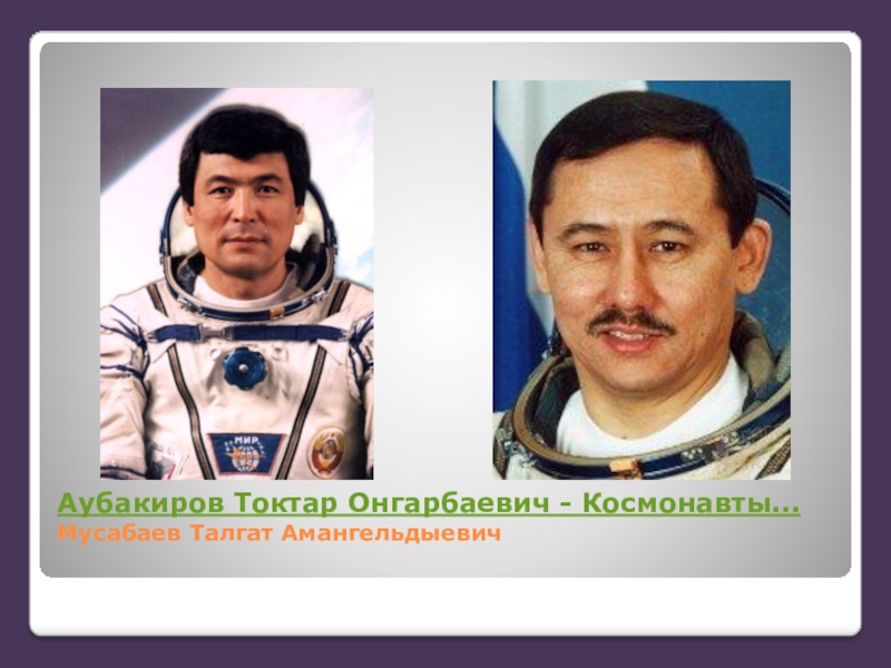 Слайд 3Аубакиров Токтар Онгарбаевич - Космонавты... Мусабаев Талгат Амангельдыевич