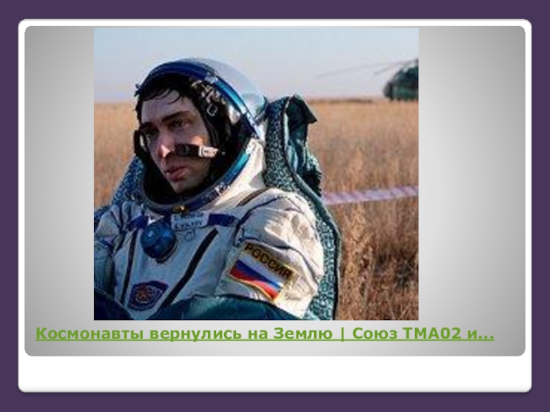 Слайд 9Космонавты вернулись на Землю | Союз ТМА02 и...
