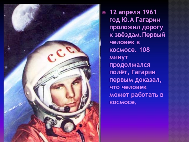 12 апреля 1961 года Юрий Гагарин на корабле «Восток» стал космическим первопроходцем