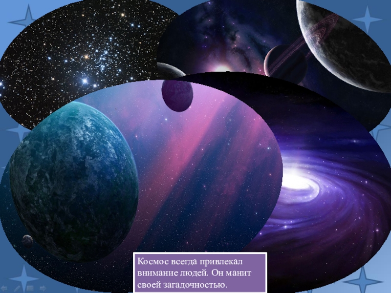Слайд 4Космос всегда привлекал внимание людей. Он манит своей загадочностью.
