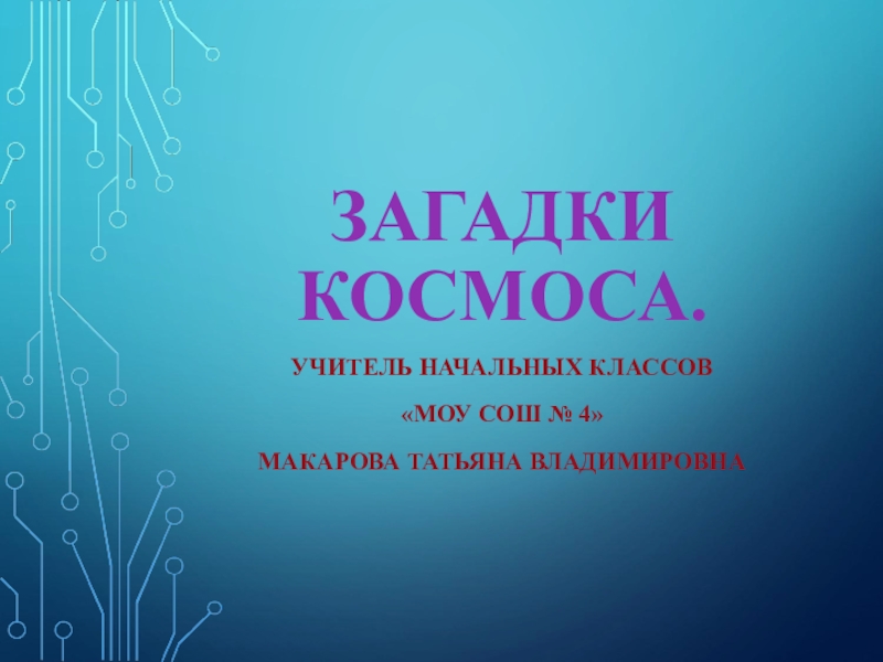 ЗАГАДКИ  КОСМОСА.УЧИТЕЛЬ НАЧАЛЬНЫХ КЛАССОВ«МОУ СОШ № 4»МАКАРОВА ТАТЬЯНА ВЛАДИМИРОВНА