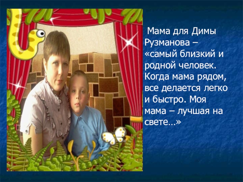 Слайд 15 Мама для Димы Рузманова – «самый близкий и родной