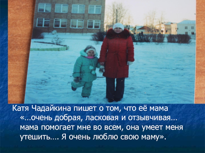 Слайд 20Катя Чадайкина пишет о том, что её мама «…очень добрая, ласковая