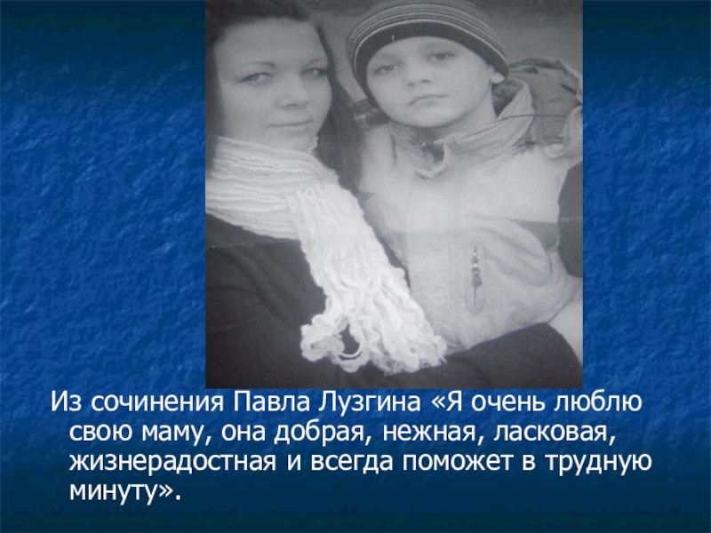Слайд 19 Из сочинения Павла Лузгина «Я очень люблю свою маму, она
