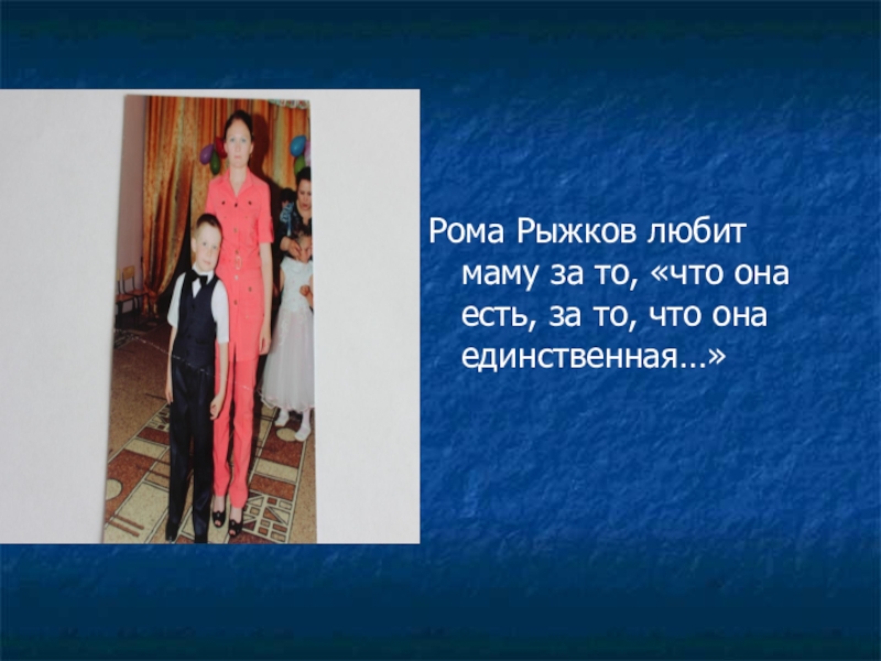 Слайд 16Рома Рыжков любит маму за то, «что она есть, за то,