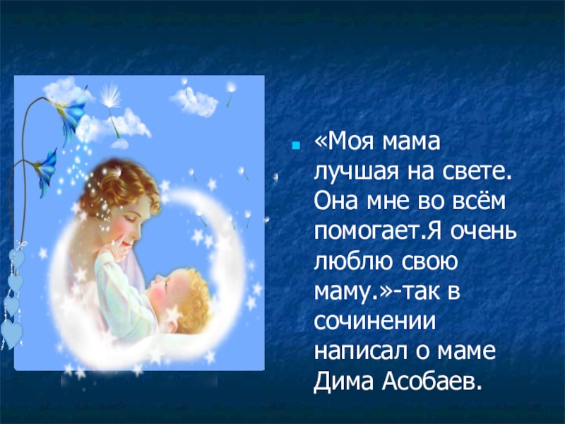 люблю свою маму.»-так в сочинении написал о маме Дима Асобаев.